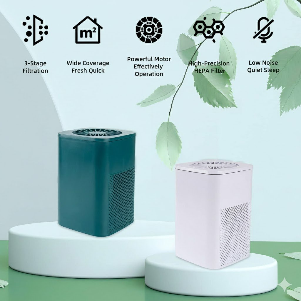 This purifier helps reduce dust, smoke, odors, and airborne particles while operating quietly and energy-efficiently, ensuring uninterrupted work or sleep. Its lightweight, modern design fits easily into any space and is simple to use and maintain. A practical solution for everyday air freshness, wherever you are.