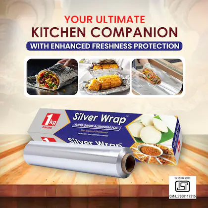 Our Aluminum Foil (1kg Gross) is made from high-quality, food-grade aluminum, offering excellent strength, flexibility, and heat resistance. It is ideal for food wrapping, cooking, baking, grilling, and storage. Designed to retain freshness and prevent moisture loss, this foil is a reliable choice for both household and commercial use.Perfect for kitchens, restaurants, catering services, and food packaging, this aluminum foil ensures hygienic handling and convenient usage. Durable and easy to shape, it meets everyday food preparation and storage needs efficiently