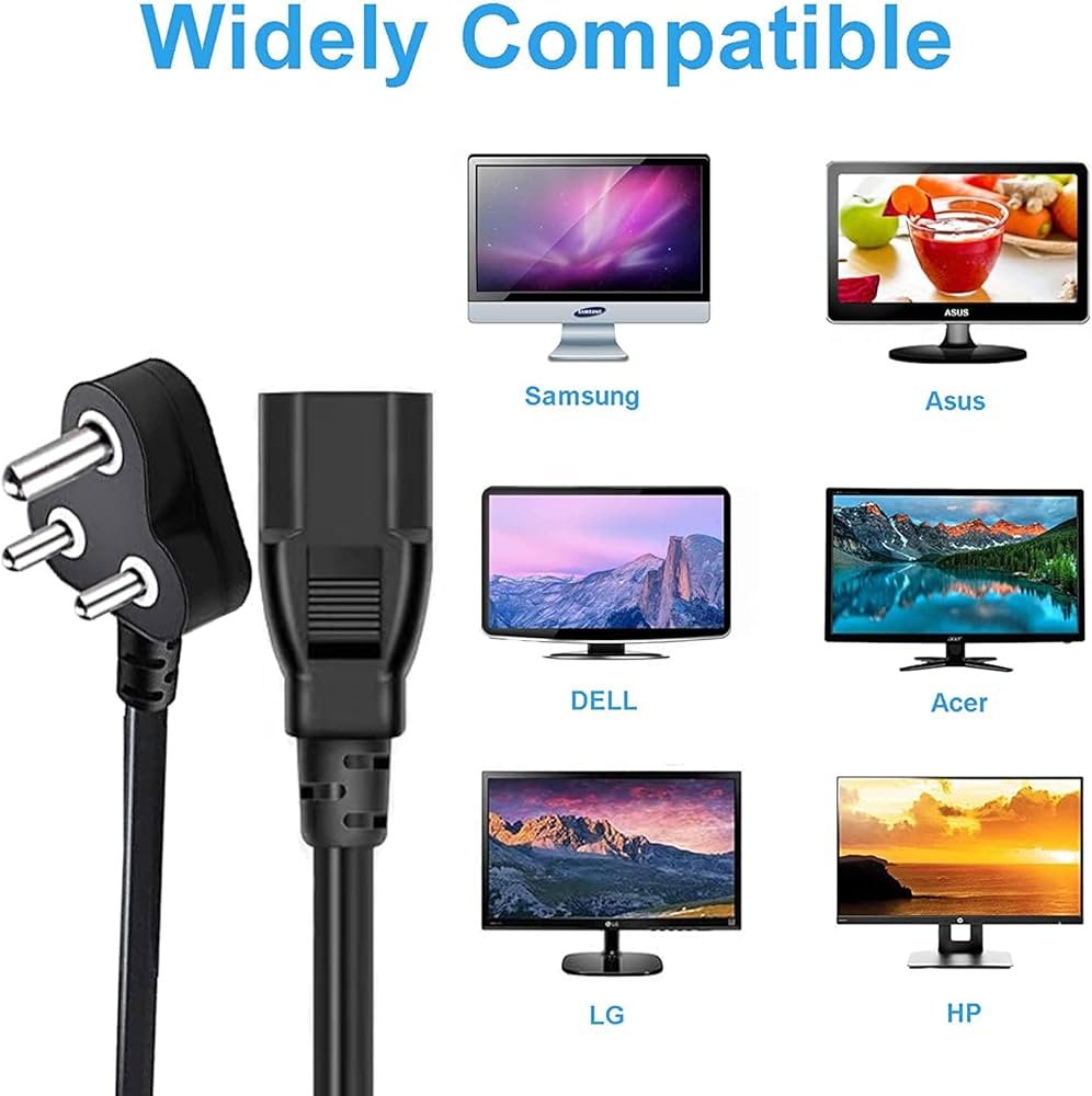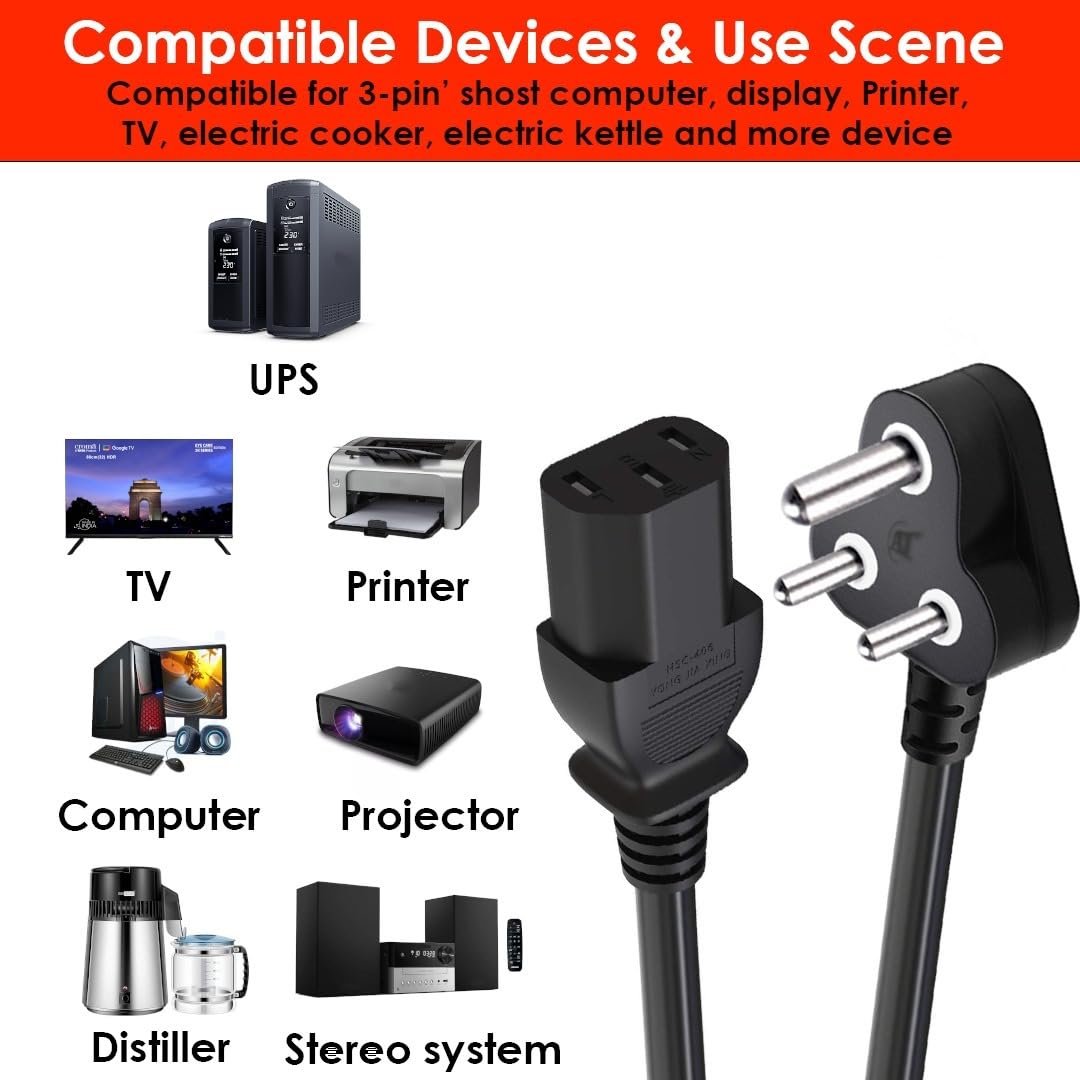 Universal Compatibility: Designed with a female-to-male, 3-prong (Type D for India) connector, suitable for most desktop computers, scanners, printers, LED TVs, projectors, and game consoles that use a removable power cord.