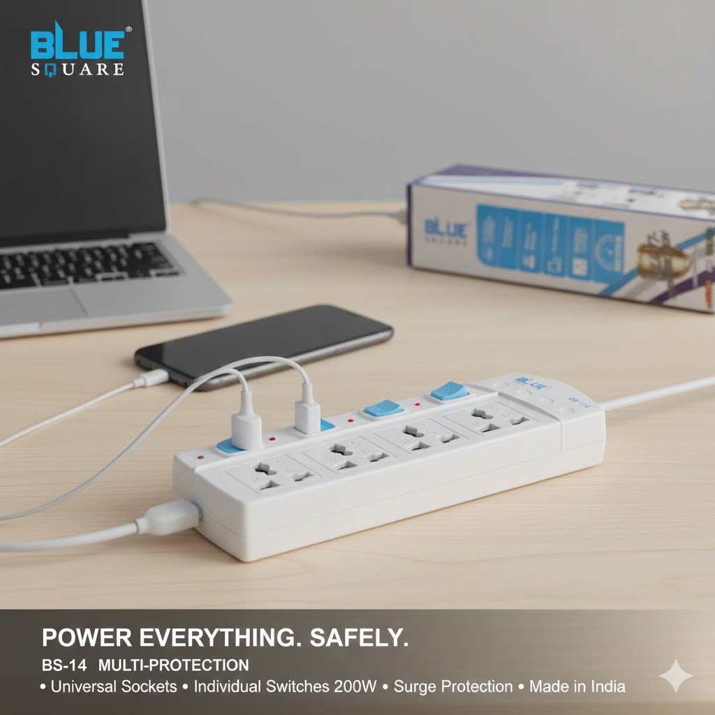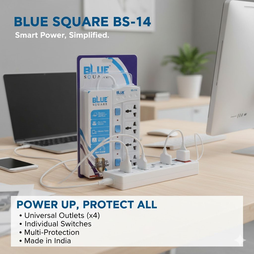 Universal Socket Compatibility: The four universal sockets are designed to accommodate various plug types (flat, round, square, or angled), eliminating the need for multiple adapters.