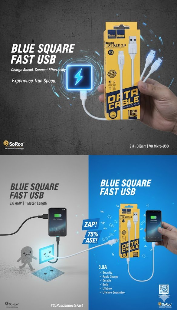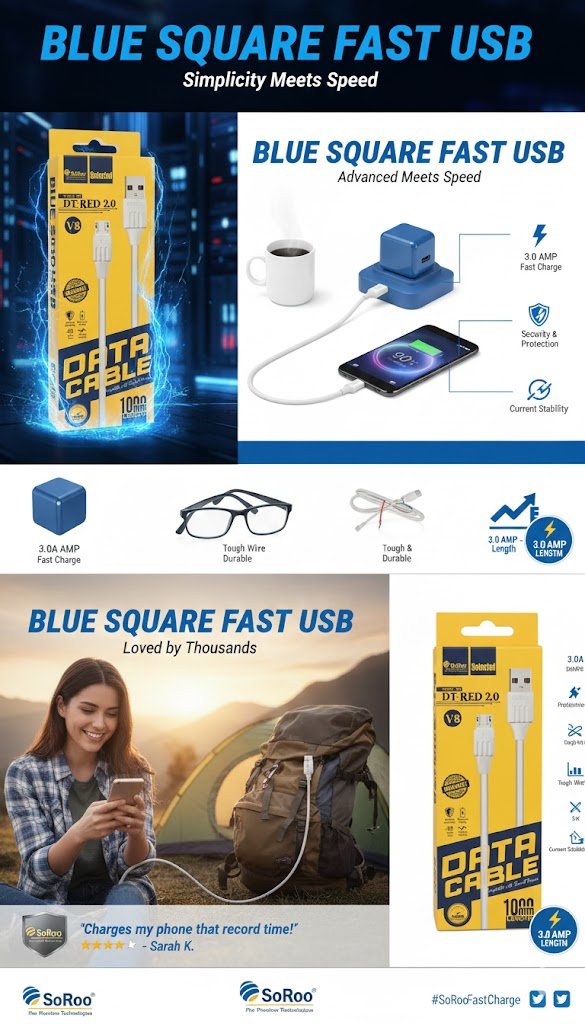 Brand: The product is manufactured by The Blue Square Enterprises, an Indian electronics accessories brand.
