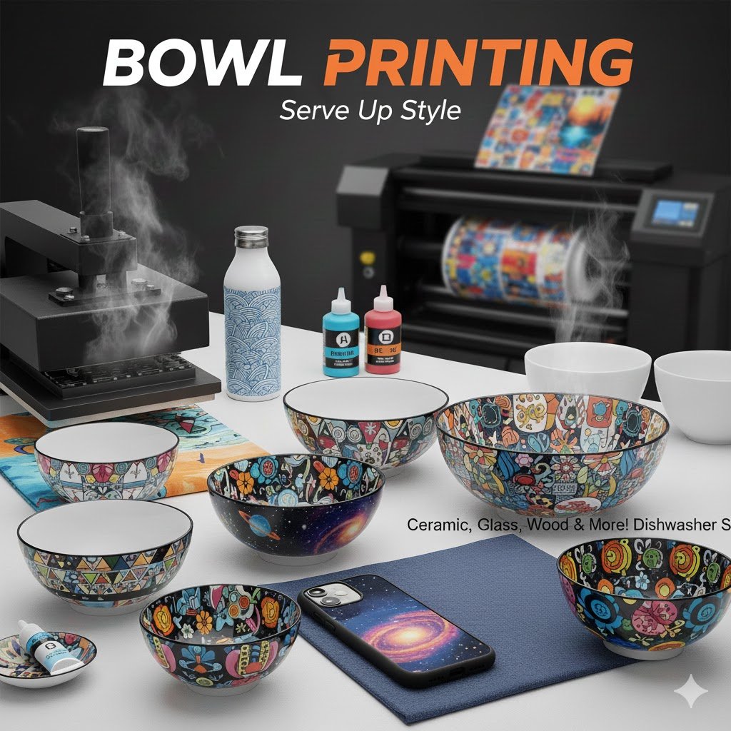 Bowl printing is a process of customizing bowls with vibrant designs, logos, patterns, or images, making everyday items visually appealing and personalized. Using advanced printing techniques, the designs are durable, scratch-resistant, and safe for regular use. Perfect for promotional gifts, personalized dining sets, restaurants, cafes, or special events, printed bowls combine practicality with style, turning simple kitchenware into eye-catching, custom pieces.