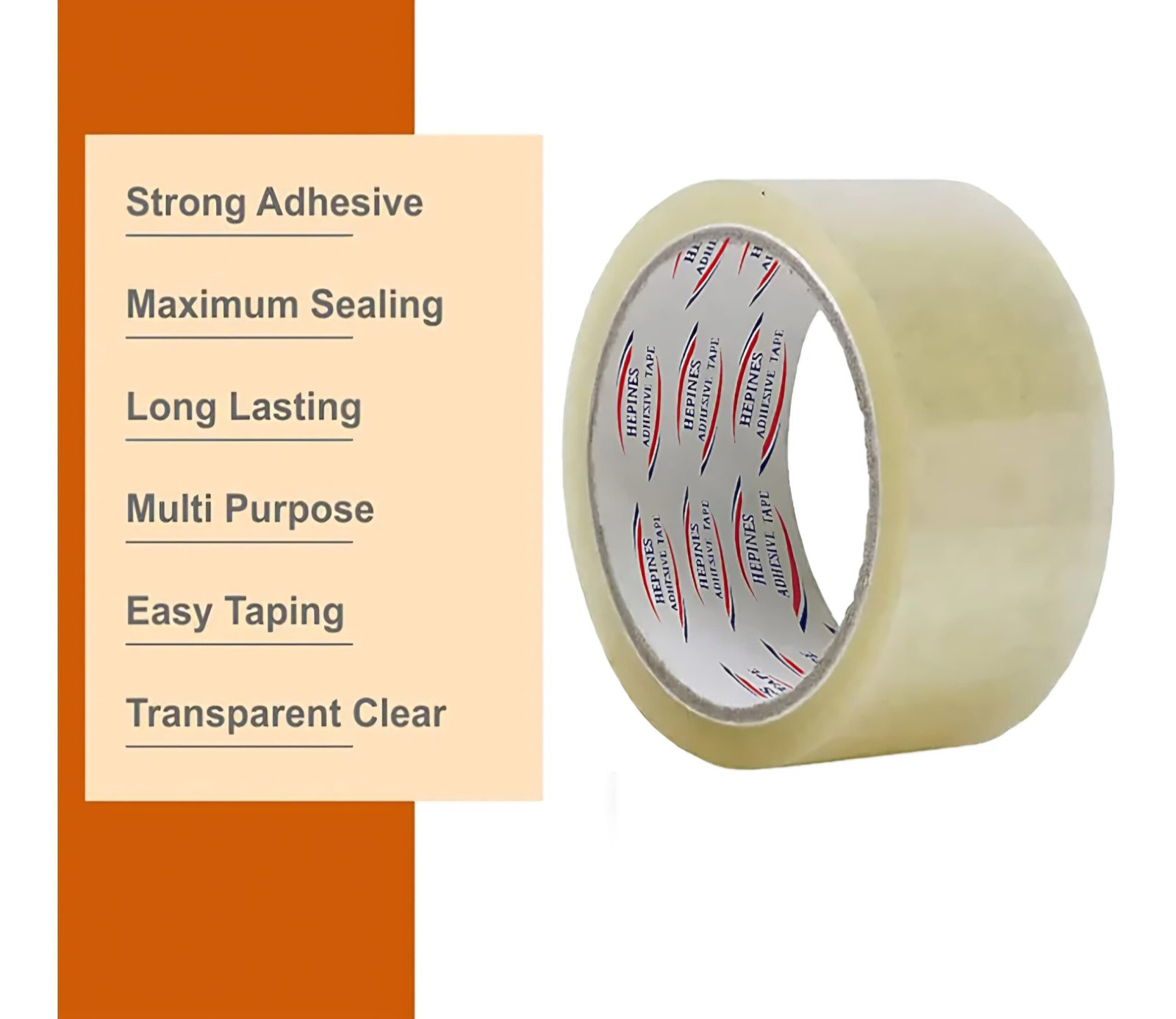 - Transparency: The high clarity, transparent finish makes it ideal for use where visibility of labels, designs, or box contents underneath the tape is necessary, providing a professional look.