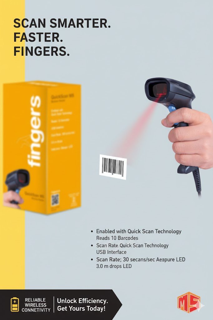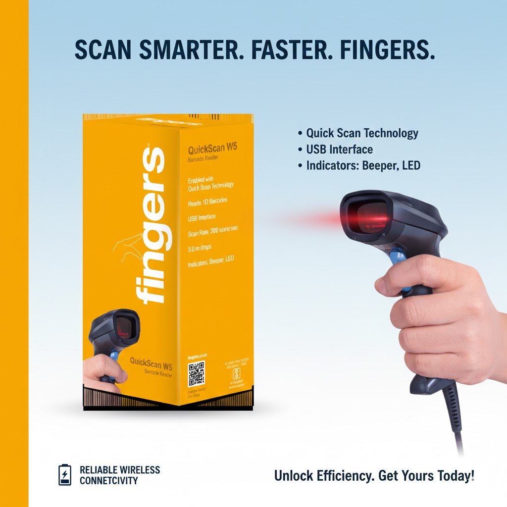 1D Barcode Support: Capable of reading all standard 1D barcodes, including UPC, EAN, Code 39, Code 128, and more, ensuring versatility across various applications.