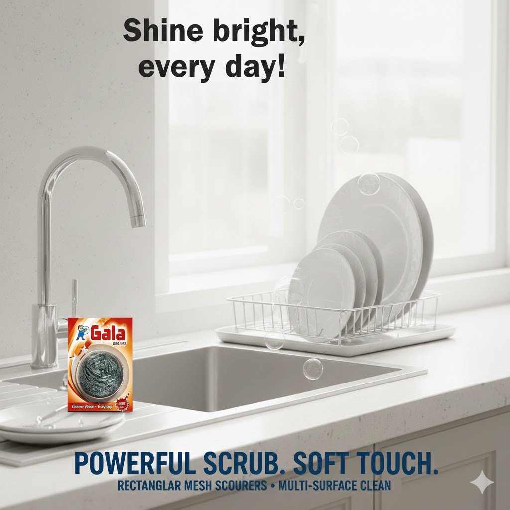 Gala Steel Scrubber Round is a heavy-duty cleaning tool designed to remove stubborn grease, burnt food, and tough stains with ease. Made from high-quality steel wire, this round scrubber provides long-lasting durability and strong scrubbing power.Its round shape allows for efficient cleaning of cookware, grills, pans, sinks, and other metal surfaces. Perfect for both household and commercial use, the Gala Steel Scrubber Round ensures thorough cleaning while maintaining its shape over time.