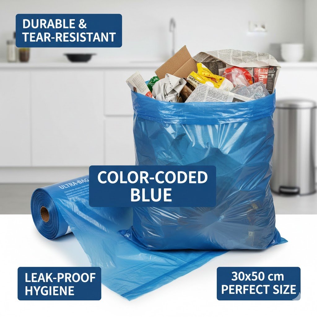 Keep your space clean and organized with our Blue Garbage Bags – Roll Size 30×50 cm. Made from durable, high-quality plastic, these bags are designed to handle everyday waste without tearing or leaking. The convenient roll format allows for easy storage and dispensing, making them ideal for offices, homes, restaurants, and commercial spaces. Their bright blue color helps distinguish waste types for efficient segregation and hygiene management.