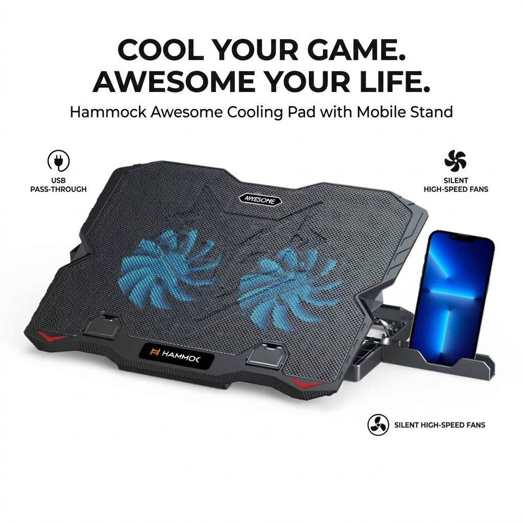 Upgrade your workspace with the HAMMOK Denver Laptop Cooling Pad with Mobile Stand, a smart solution designed for both cooling performance and convenience. Perfect for professionals, students, and gamers, this cooling pad helps maintain optimal laptop temperature while improving your overall setup.