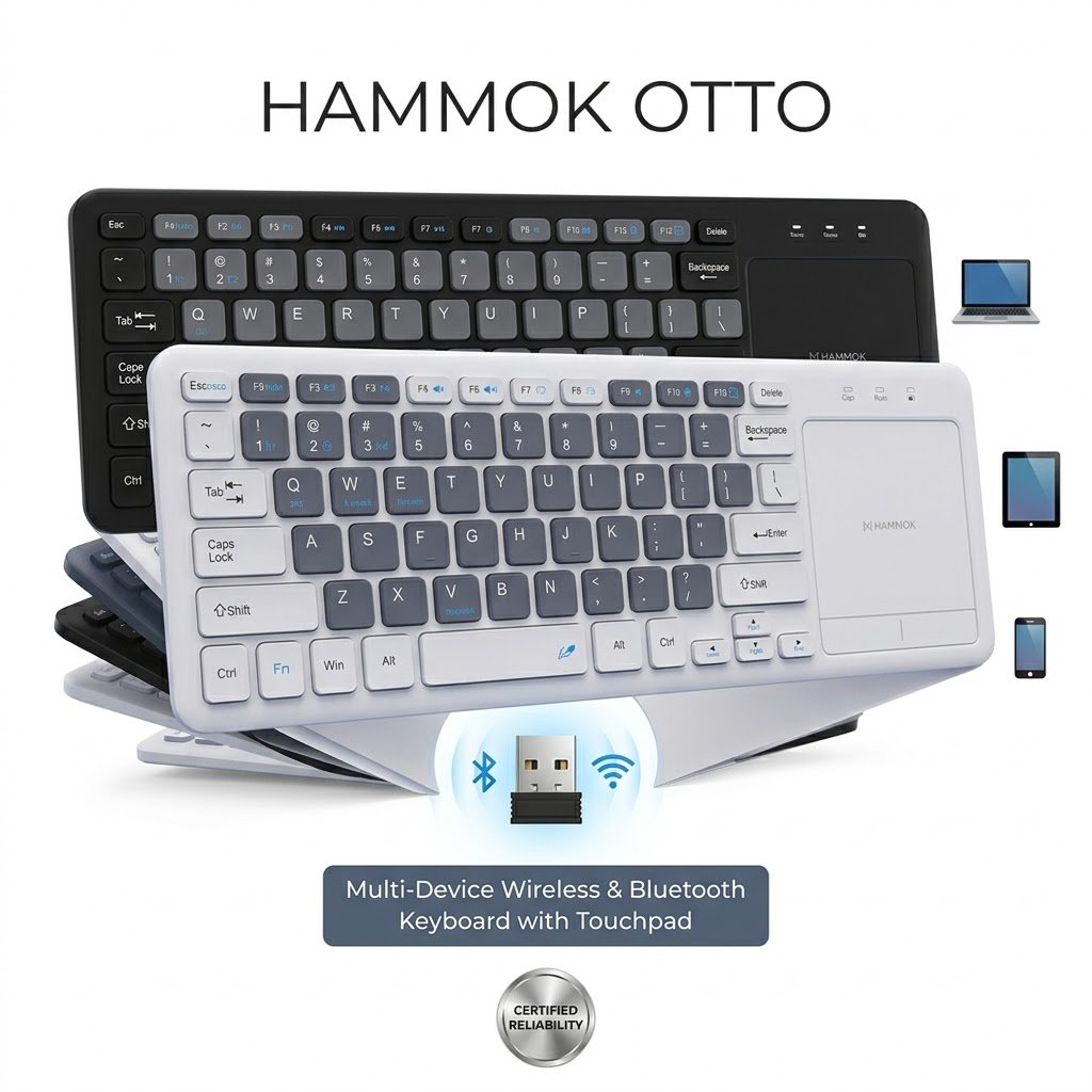 HAMMOK OTTO, Multi-Device Wireless & Bluetooth Keyboard with Touchpad(single pcs)