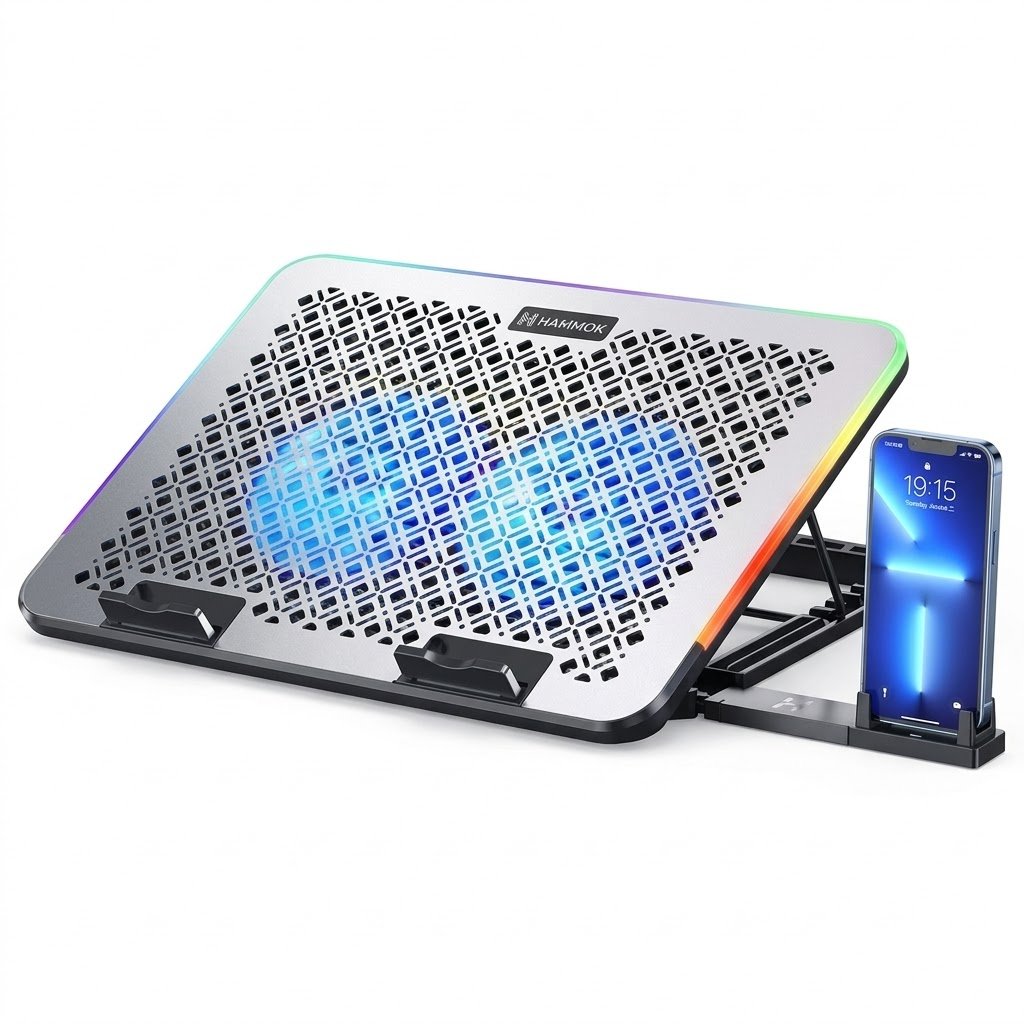 Upgrade your laptop setup with the HAMMOK Premium Laptop Cooling Pad with Mobile Stand, engineered for superior cooling performance and maximum convenience. Perfect for professionals, gamers, and students, this cooling pad ensures your laptop stays cool even during heavy usage.