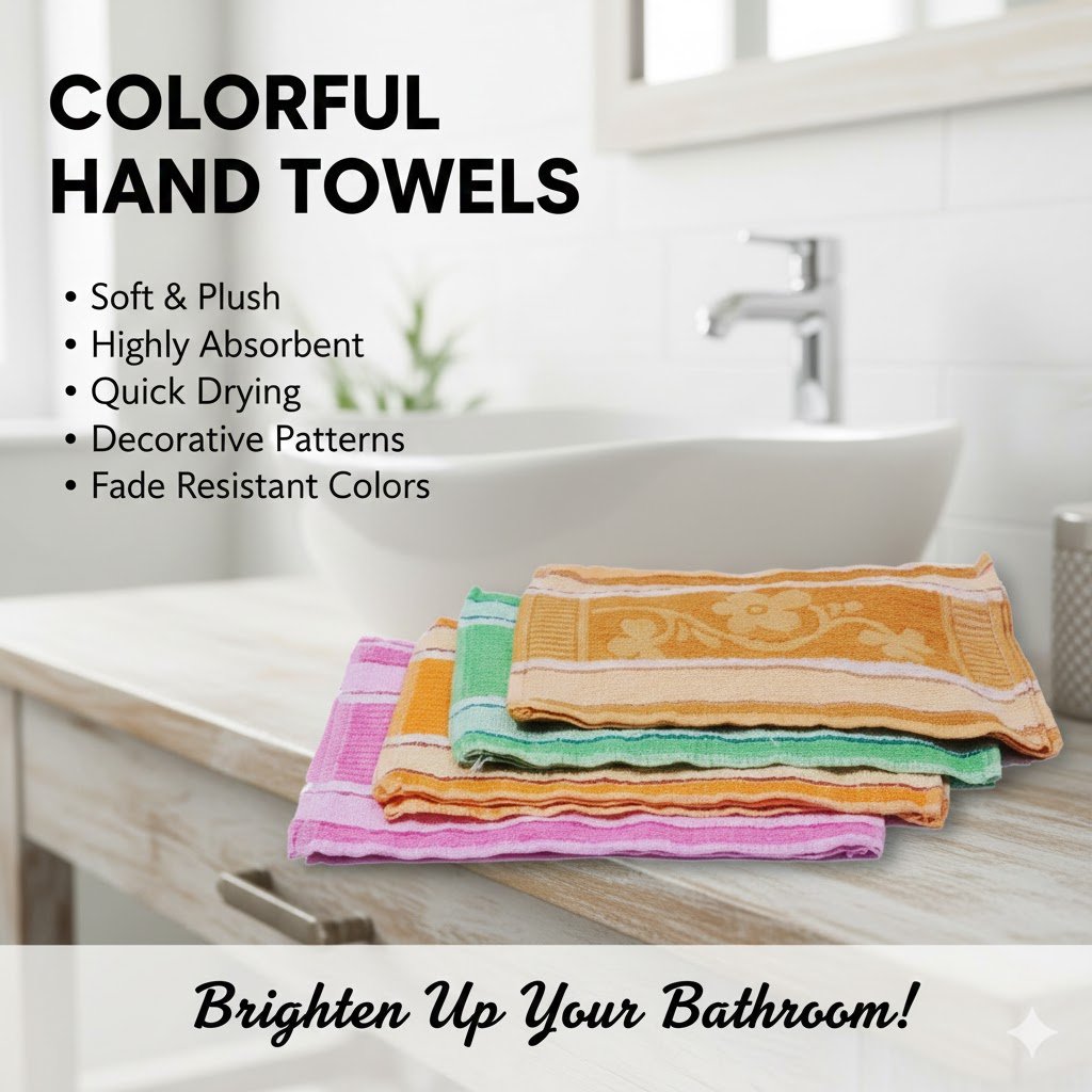 Add comfort and color to your daily routine with our Hand Towel in Colors. Made from soft, absorbent fabric, this hand towel is perfect for drying hands quickly while feeling gentle on the skin. Available in a range of attractive colors, it adds a fresh, stylish touch to bathrooms, kitchens, gyms, and wash areas. Durable and easy to maintain, this hand towel is designed for everyday use at home, in offices, hotels, or guest spaces.