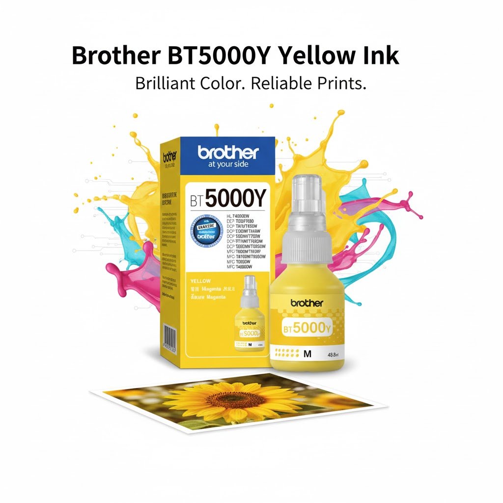 The Brother BT5000Y Yellow Ink Bottle is a genuine, high-yield ink designed for Brother Ink Tank printers, delivering bright, vivid yellow color and consistent print quality. Ideal for both home and office use, this original Brother ink ensures smooth printing, sharp graphics, and long-lasting color output.