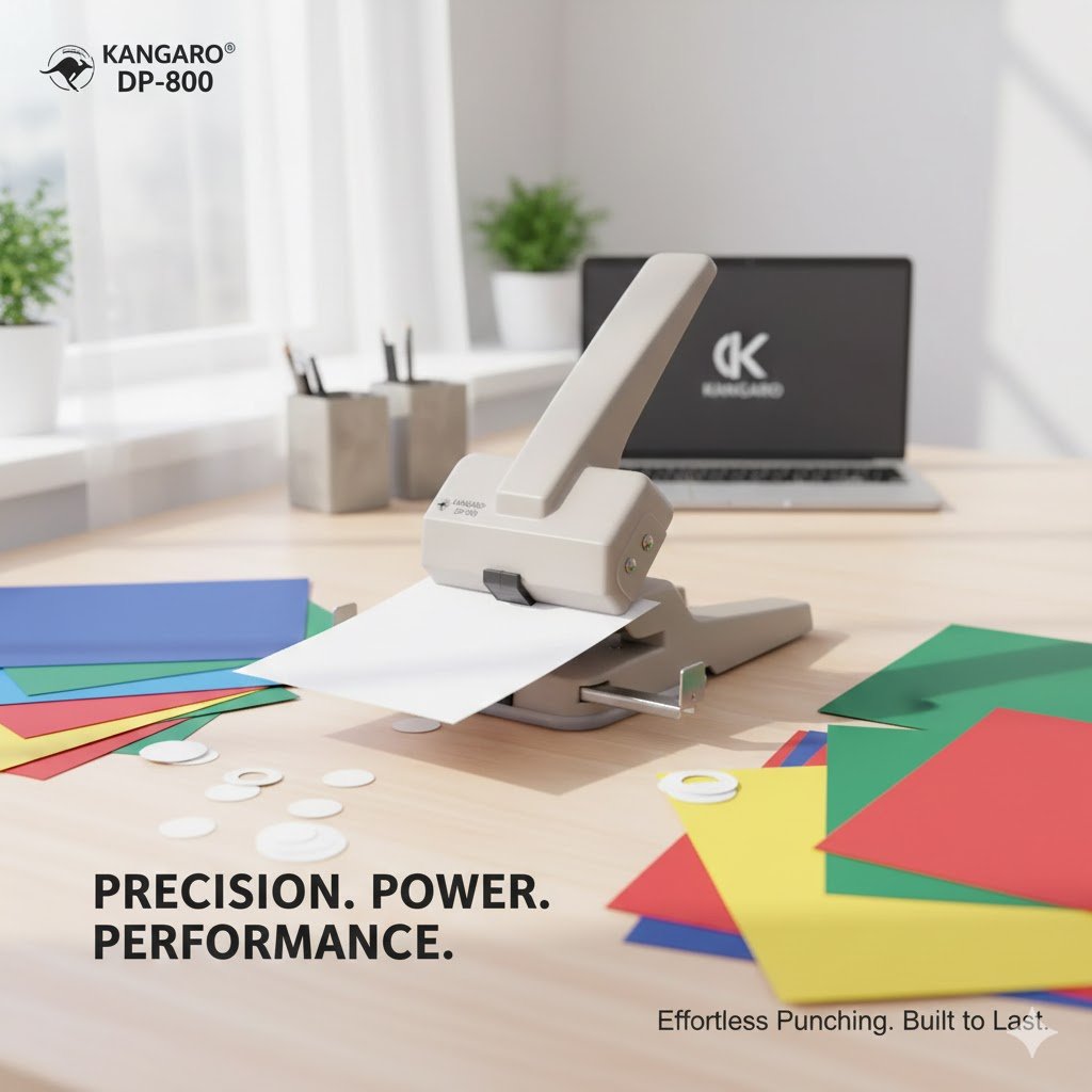 The Kangaro DP-800 Punch Stapler is a powerful, reliable tool designed to handle all your document stapling and punching needs with ease. Built for heavy-duty use, this stapler punches and staples multiple sheets in one smooth motion, making office, school, or home organization faster and more efficient. Its sturdy metal construction ensures long-lasting durability, while the ergonomic design reduces hand fatigue during frequent use. Compact yet robust, the DP-800 is the perfect addition to any workspace, combining functionality, precision, and convenience in a single device.