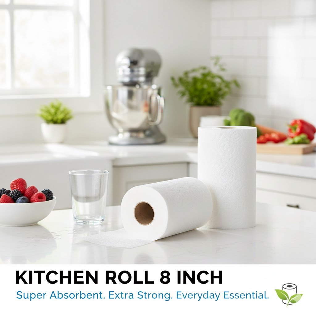 Keep your kitchen clean and mess-free with our high-quality 8 Inch Kitchen Roll, designed for everyday convenience and efficiency. Made from strong, absorbent paper, this kitchen roll easily soaks up spills, wipes surfaces, and helps with food prep and cleaning tasks. Its durable texture ensures it doesn’t tear easily, even when wet, making it reliable for both light and heavy use. Compact yet effective, the 8-inch size is perfect for home kitchens, offices, cafés, and restaurants.