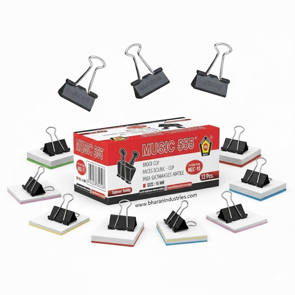 Keep your documents neatly secured with the Music 555 Binder Clip 15mm. Made from durable metal, this clip holds papers firmly without tearing or slipping. Compact yet strong, it’s perfect for home, office, school, or creative projects. Organize reports, notes, and files efficiently with this essential stationery tool.