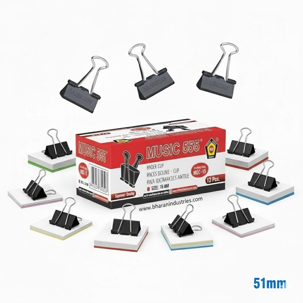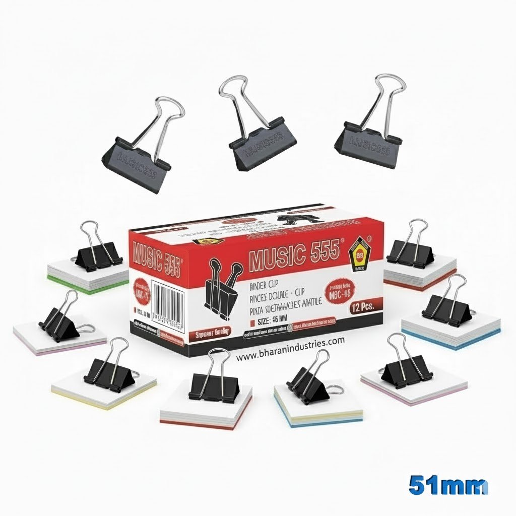 Organize large volumes of documents with ease using the Music 555 Binder Clip 51mm Box Pack. Designed for maximum strength, these extra-large binder clips are made from high-quality metal to securely hold thick stacks of paper without slipping or tearing. Packed neatly in a box for convenient storage, they are ideal for offices, schools, institutions, and heavy-duty filing needs.