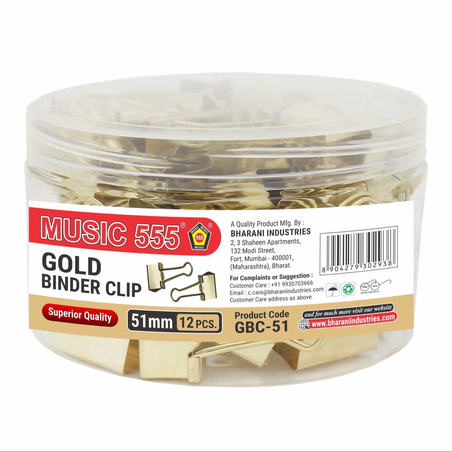 Ideal for reports, letters, and important files, the Music 555 Gold Binder Clip (51mm) adds elegance and efficiency to your desk organization.