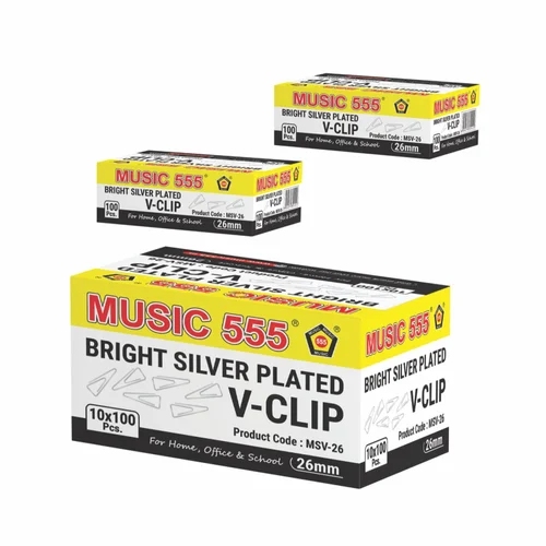 The Music 555 Silver Plated V-Clip (26mm) is a high-quality stationery essential designed for neatly organizing documents. Made from durable steel with a smooth silver-plated finish, these clips offer excellent strength and resistance to rust, ensuring long-lasting use.