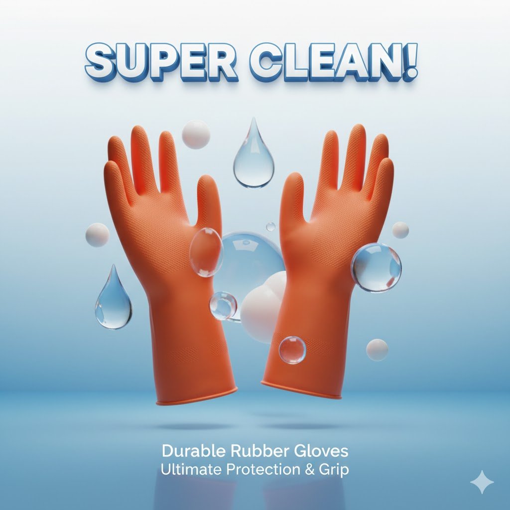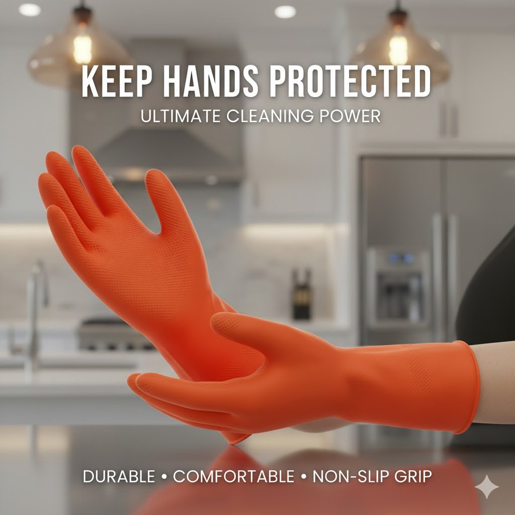 Our Orange Rubber Hand Gloves (Single Pack) are designed to provide reliable hand protection and comfort for daily use. Made from high-quality rubber material, these gloves are flexible, durable, and easy to wear. The bright orange color ensures visibility, making them ideal for cleaning, kitchen work, food handling, and general household or commercial use.