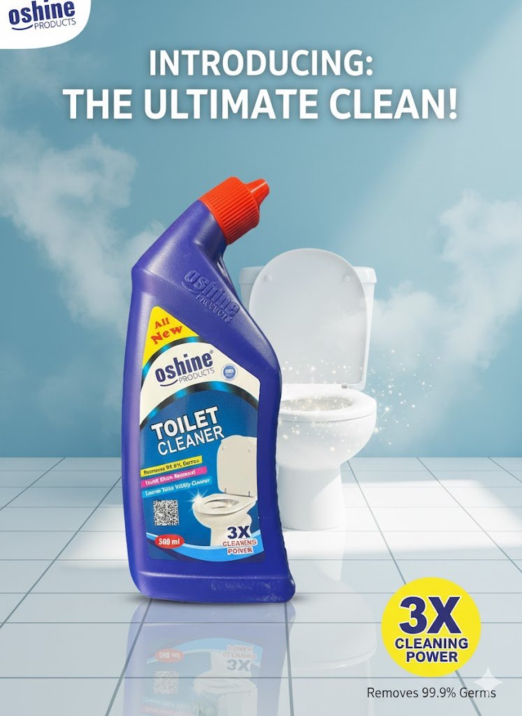 Experience a new standard of bathroom hygiene with Oshine Toilet Cleaner. Specifically formulated with a powerful, thick blue liquid, this cleaner is designed to tackle the toughest challenges—from stubborn yellowish stains and limescale to hidden germs.