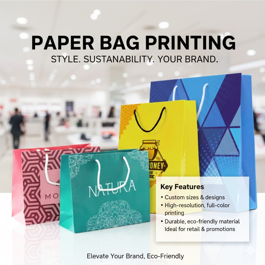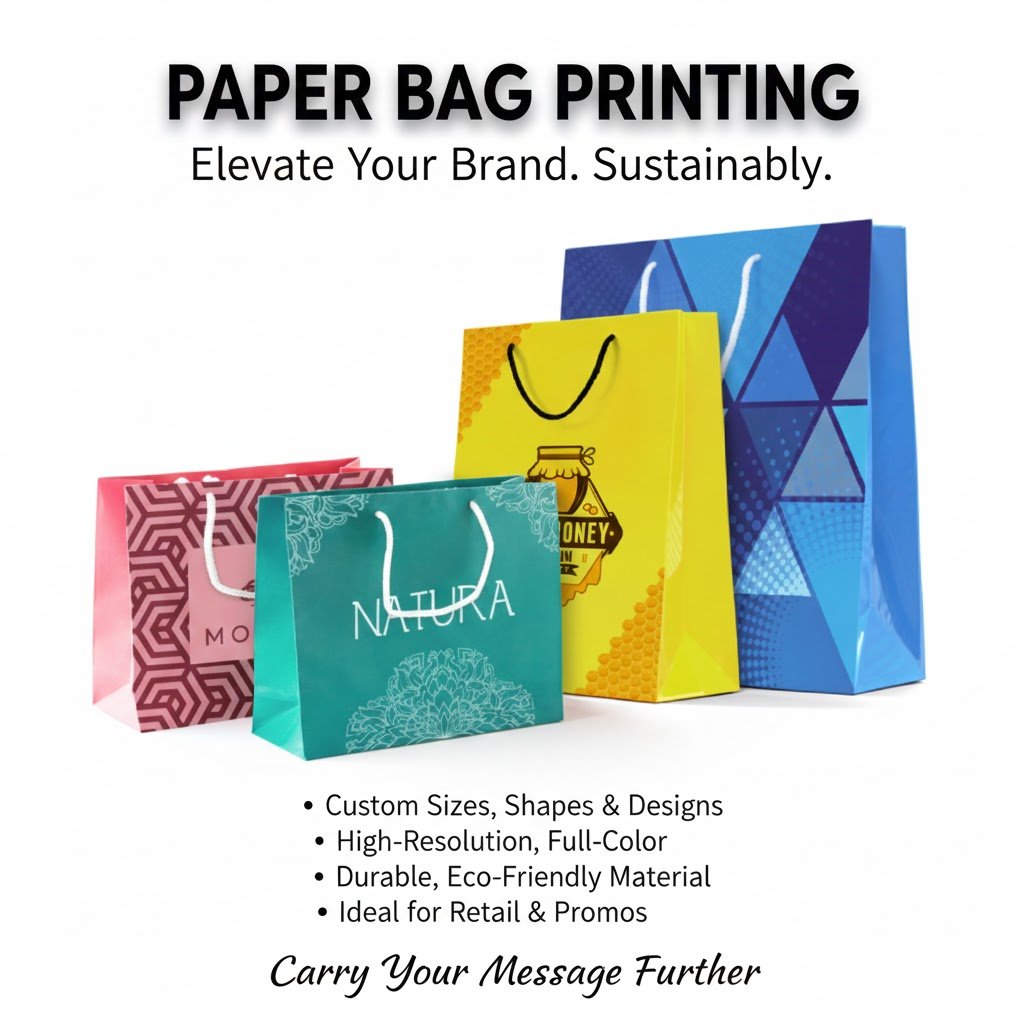 Promote your brand while being eco-friendly with high-quality paper bag printing. Perfect for retail stores, boutiques, events, and giveaways, our custom paper bags combine durability with attractive, full-color designs to leave a lasting impression on your customers.