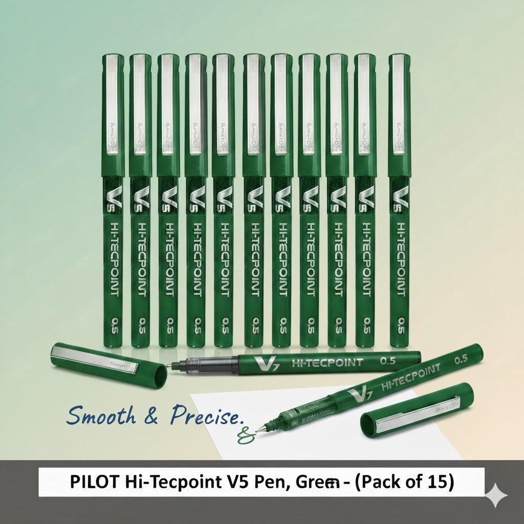 January 13, 2026Pilot Hi-Tecpoint V5 Pen, Green-(Pack of 15)