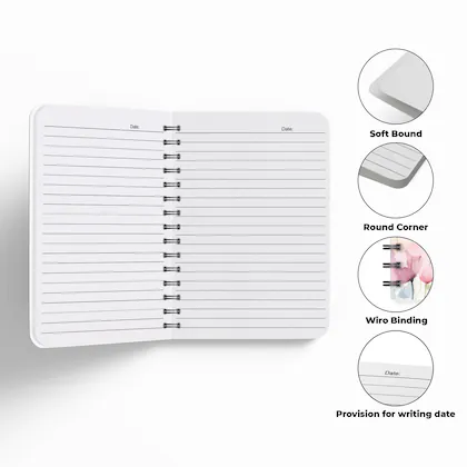 The spiral binding allows pages to lie flat, making writing, note-taking, and sketching effortless. Its high-quality paper ensures clean, smudge-free writing, while the sturdy cover protects your notes for long-term use. Perfect for school, office, or personal use, this A5 spiral notebook is an essential everyday companion.