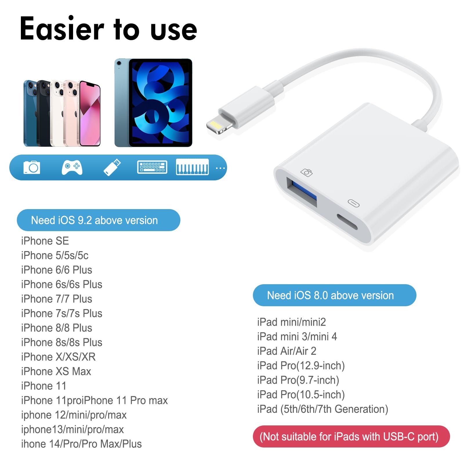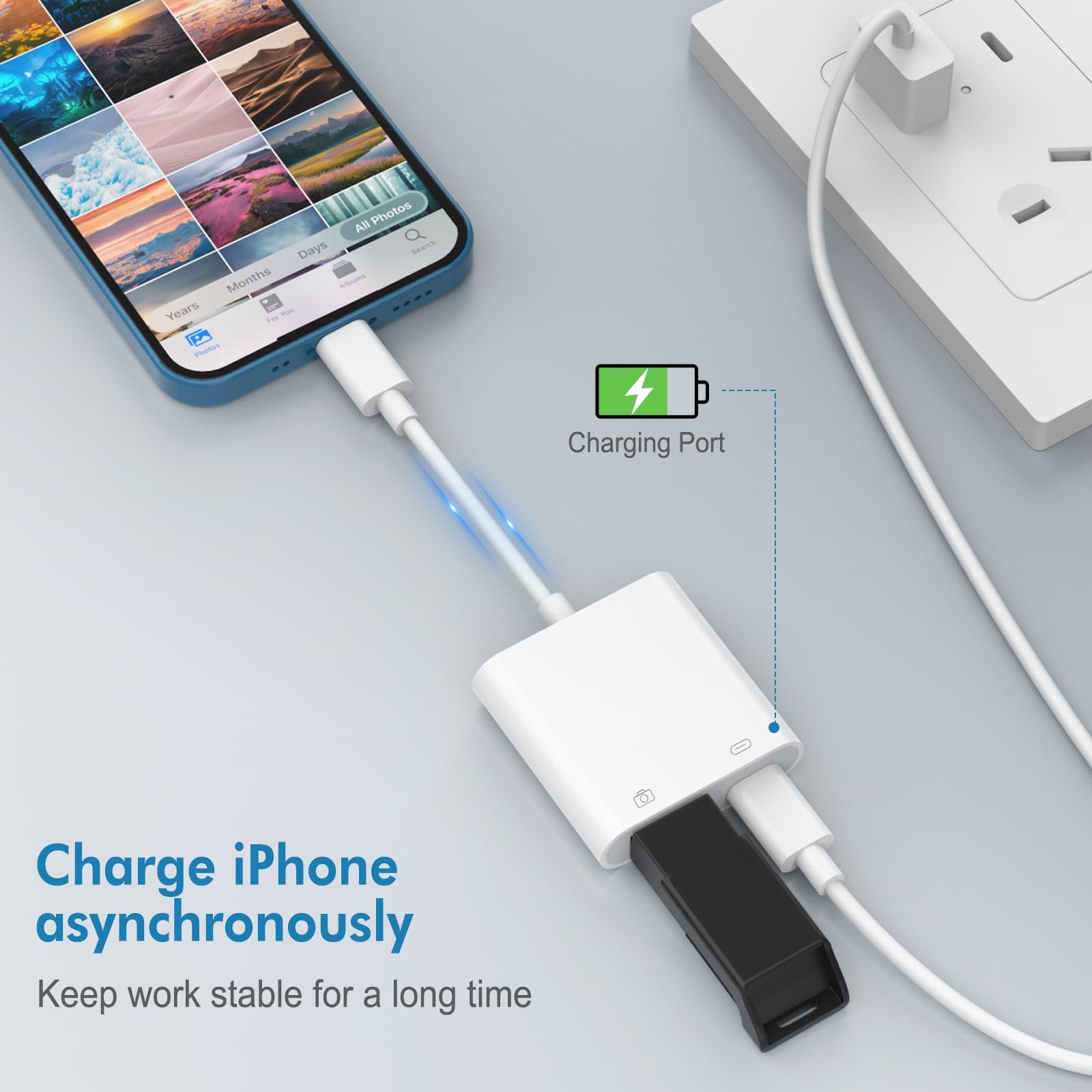 Lightning to USB (Type-A or Type-C) Adapter: Designed for Apple iPhones and iPads, these allow direct connection of a camera or a card reader to the iOS device’s Lightning port. Many versions include an extra Lightning port for charging the iOS device while transferring data.