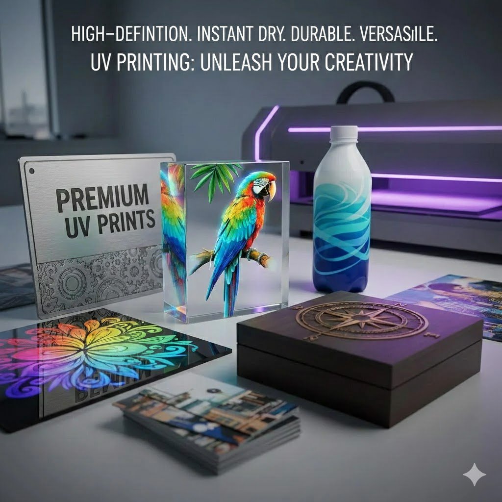UV printing delivers premium, high-definition prints with vibrant colors and exceptional durability. Using advanced ultraviolet curing technology, the ink dries instantly, allowing for sharp details, rich color depth, and a smooth, high-quality finish.